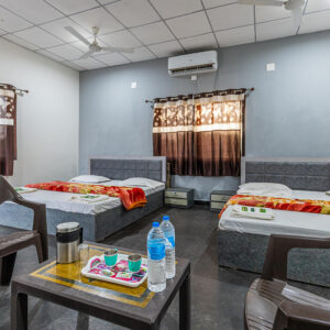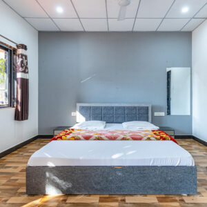 Did you say luxury and comfort? Our Premium rooms are designed to provide a comfortable and luxurious experience for our guests. Our RC Gir resort prices offer sophisticated design and functionality for an amazing stay. Our spacious rooms consist of a high-quality king-size bed with comfortable comforters and cozy blankets ensuring you a relaxing sleep experience. Our rooms have spacious bathrooms, with all the necessary things like mirrors, a shower, soft towels, a marble vanity, and many more. Large windows offer you a captivating view of nature, children playing, a swimming pool, and other beautiful views of the wildlife of Gir. Premium rooms come with premium amenities such as free parking, a dryer, AC, a big screen TV, Wifi, a Door key, a Coffee maker, 24, a swimming pool, outdoor games, 24/7 room service, hot and cold water, and many more perks. Enjoy the stay in our premium rooms at a reasonable Sasan Gir Resort Package price and witness comfort, luxury, and various amenities just for you.